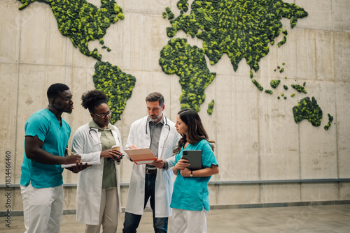 Obraz premium Medical team collaborating global health initiatives