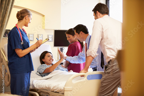 Fototapeta premium Medical Team Meeting Around Female Patient In Hospital Room