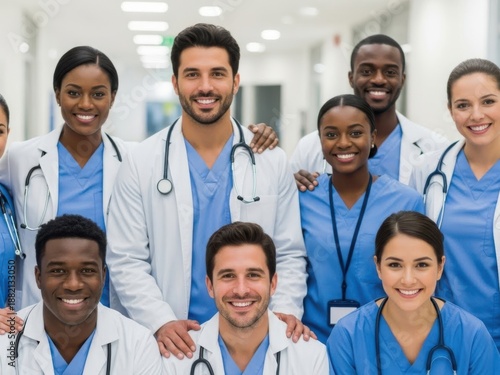 © Milon, Fototapeta premium Medical team posing together isolated on white background
