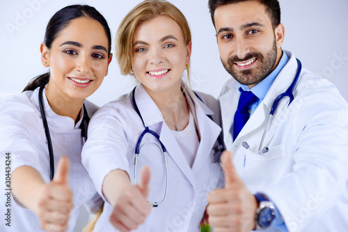 © khmelev, Fototapeta premium Medical team shows thumb up