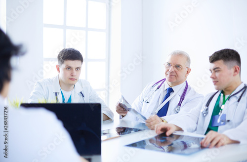 © lenets_tan, Fototapeta premium Medical team sitting and discussing at table