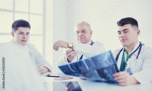 © lenets_tan, Obraz premium Medical team sitting and discussing at table