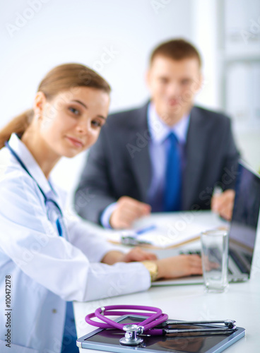 © lenets_tan, Obraz premium Medical team sitting at the table in modern hospital