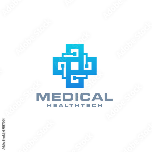 © Choi, Fototapeta premium Medical tech logo design concept with cross icon