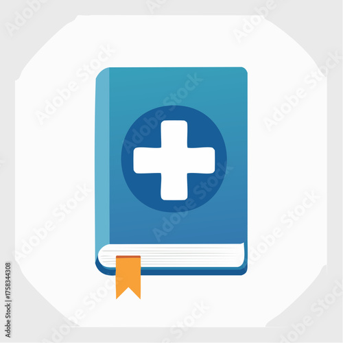 © Pionerr, Obraz premium Medical textbook icon representing health information and pharmaceutical guide