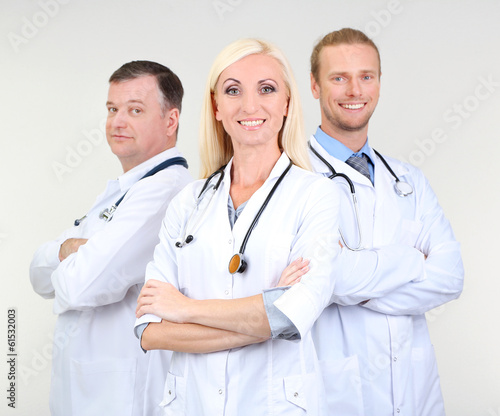 © Africa Studio, Fototapeta premium Medical workers on grey background
