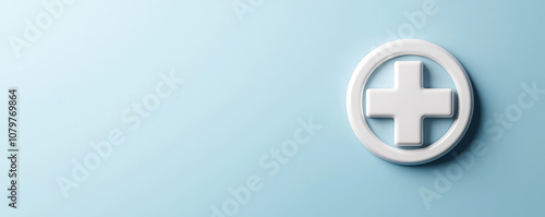 © Nakarin, Obraz premium Medicare coverage concept. clean medical symbol on soft blue background evokes trust and care
