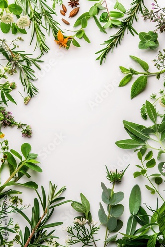 Naklejka premium Medicinal Herbs and Plants Arranged in a Circle on White Background.