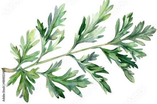 Naklejka premium Medicinal Wormwood Herb Sprig. Watercolor Illustration of Aromatherapy Plant Isolated on White
