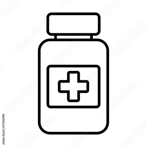 © Maksim, Obraz premium Medicine bottle and pills icon. Black and white icon. Vector illustration.