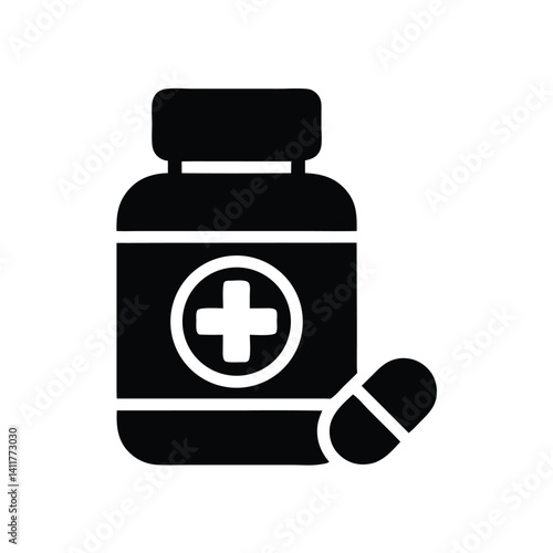 © Ogedoy, Obraz premium Medicine Bottle Icon With Pill on Transparent Background, Minimalist Style