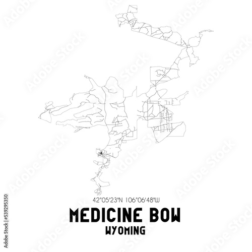 Naklejka premium Medicine Bow Wyoming. US street map with black and white lines.