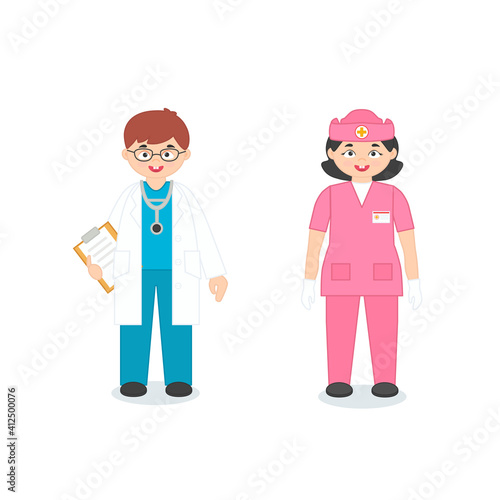 © Kostiantyn, Fototapeta premium Medicine educational activity. Cartoon Doctor and nurse. Vector illustration