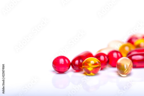 Obraz premium Medicine green and yellow pills or capsules