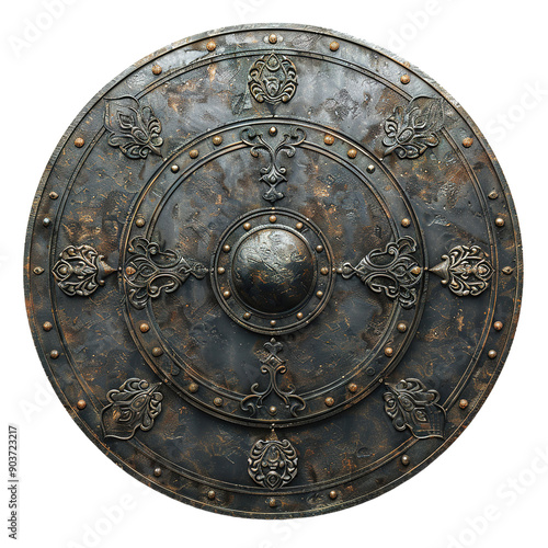 © Uwe, Naklejka premium medieval buckler side view, on isolated white background