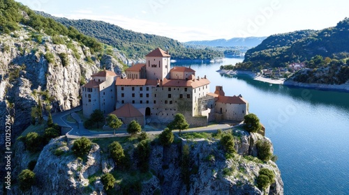 © Alzo, Fototapeta premium Medieval Castle on a Cliff overlooking River