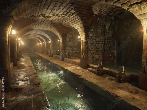 © MADGALLERY, Obraz premium medieval castle underground sewer system