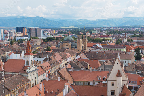 © pop_gino, Obraz premium Medieval city of Sibiu Romania with Trinity Church