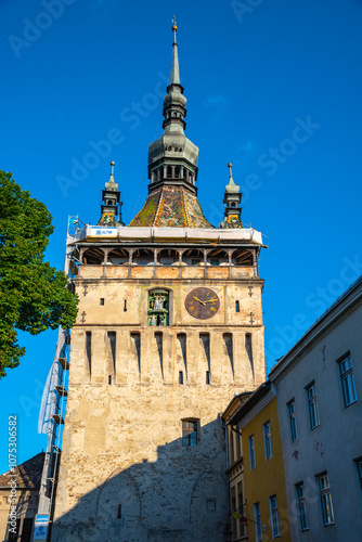 © gatsi, Fototapeta premium Medieval cityscape architecture in Sighisoara town, historical region of Transylvania, Romania, Europe