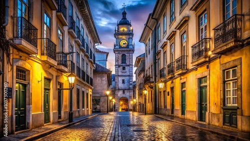 © Supittra, Fototapeta premium Medieval Clock Tower in Lisbon at Night - High Depth of Field Scenic View