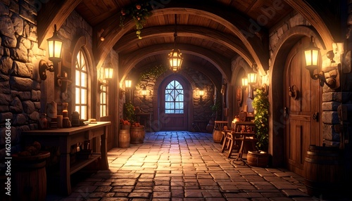© Gaji, Fototapeta premium Medieval hallway with arched ceiling