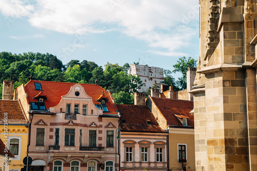 © Sanga, Fototapeta premium Medieval old town and White Tower Turnul Alb in Brasov, Romania