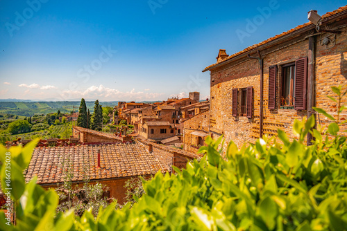 Obraz premium Medieval San Gimignano hill town with skyline of medieval towers, including...