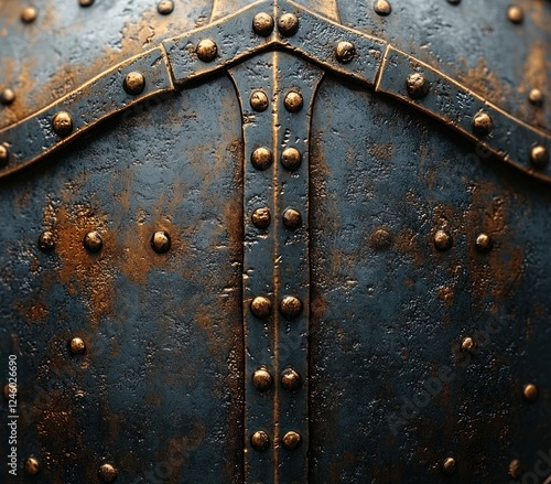 © zong, Fototapeta premium medieval shield close-up texture metal rivets dramatic lighting