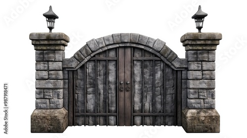 Fototapeta premium medieval stone gates isolated on white background