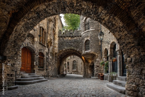© Nanang, Fototapeta premium Medieval Stone Street Archway in Europe.