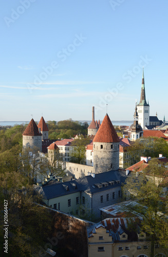 Fototapeta premium Medieval towers in the city wall around Tallinn, Estonia
