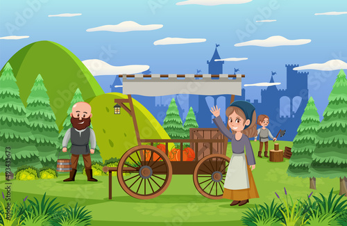 © brgfx, Fototapeta premium Medieval town scene with villagers