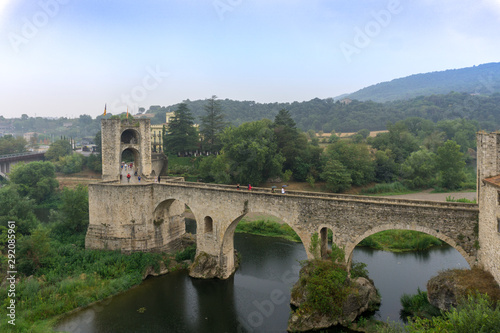 © Ana, Obraz premium Medieval village Besalu. Bridge over the river Fluvia. Girona