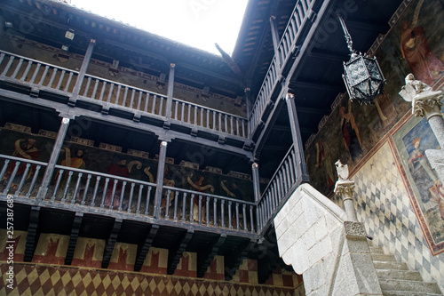 © Didi, Obraz premium Medieval wooden gallery of the second floor in an old stone castle