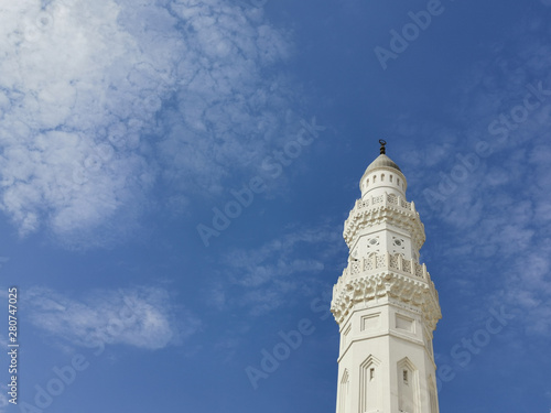© instagram.com/_alfil, Fototapeta premium Medina, Saudi Arabia - March 28, 2018 : View of exterior building Quba or Kuba Mosque in Medina. Selective focus