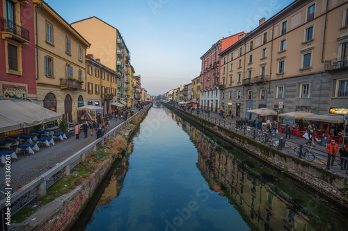 Fototapeta premium Mediolan, Włochy, 11 listopada 2017 r. - Kanał Naviglio Grande w Mediolanie,...