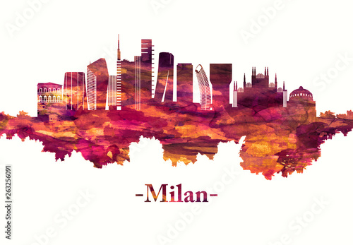 Obraz premium Mediolan Włochy panoramę na czerwono