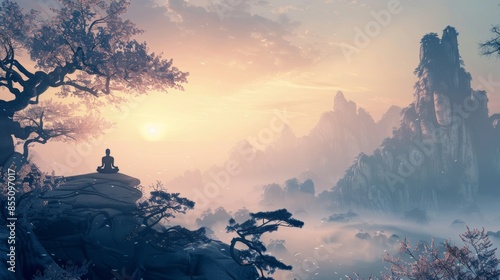 © Lala Farikha, Fototapeta premium Meditation in the Mountains.