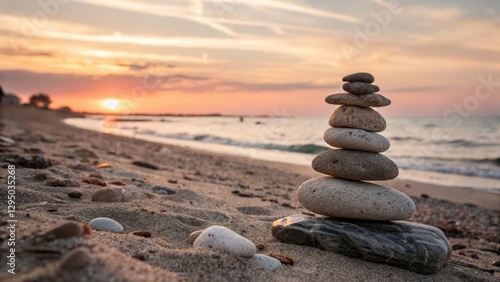 © DreamTone Creations, Fototapeta premium Meditation inspirational text. Serene image of stacked pebbles symbolizing calmness and mindfulness, perfect for meditation and inspirational texts. Peace Calm Quotes.
