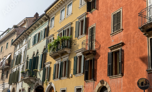 Fototapeta premium mediterranean facades / Pretty houses in Verona with balconies and shutters