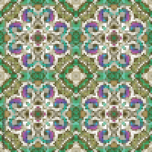 Fototapeta premium Mediterranean mosaic seamless pattern design, Repeat textile design.