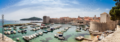 Obraz premium Mediterranean panorama of the beautiful Dubrovnik old city including the old port, city walls and fortifications.