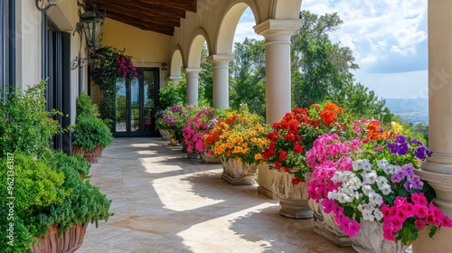 Naklejka premium Mediterranean Patio with Colorful Flowers