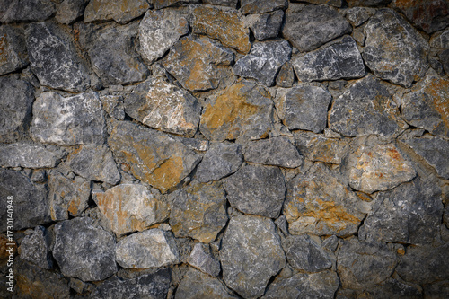 © Михаил Шорохов, Obraz premium Mediterranean rustic stone wall with warm tones