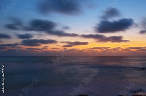 Fototapeta premium Mediterranean sea and evening sky in Israel. The shot using long exposure and contain soft focus.