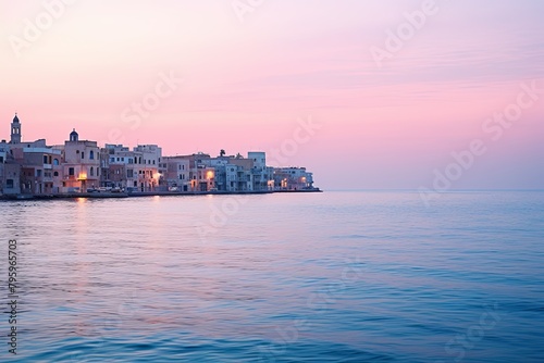 Fototapeta premium Mediterranean Sea Gradient Elegance: Vibrant Dusk in Seaside Town