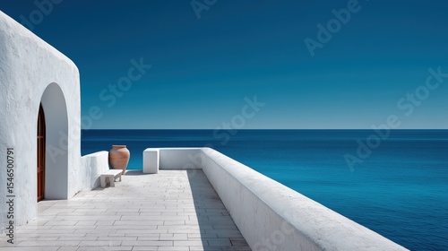 © CLARET, Fototapeta premium Mediterranean Sea View White Architecture Terrace