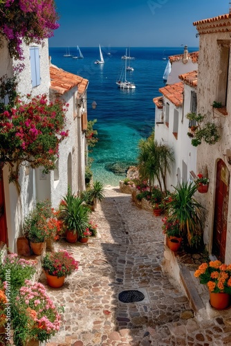 Naklejka premium Mediterranean Seaside Lemon Tree Patio