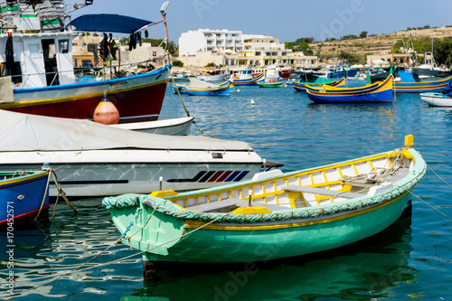 Obraz premium Mediterranean traditional colorful boats in Malta
