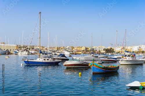 Fototapeta premium Mediterranean traditional colorful boats in Malta